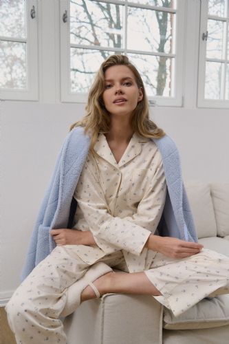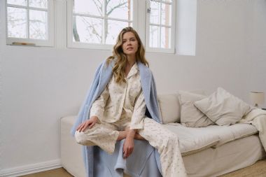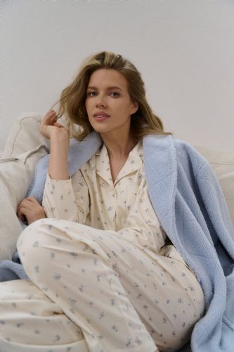 Soft and cosy, this light blue bathrobe offers a timeless silhouette with a luxurious, comforting feel. Designed with a classic shawl collar and a wrap-style front for effortless comfort. Made from plush polyester fabric - warm and exceptionally soft against the skin. Features a calming light blue shade with a subtle quilted diamond texture throughout. Includes a matching tie belt to adjust the fit and enhance the relaxed shape. Finished with practical pockets for everyday convenience.