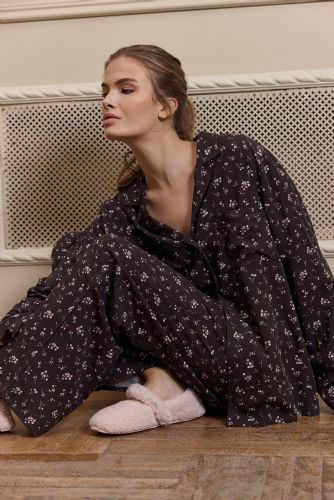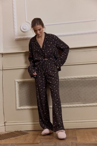 Soft and feminine, this dark pyjama set combines a relaxed silhouette with an elegant look.