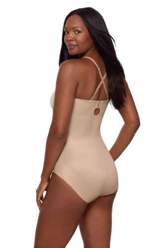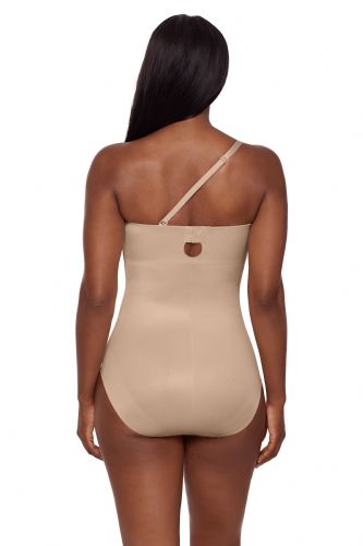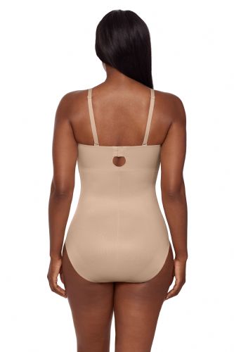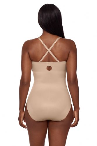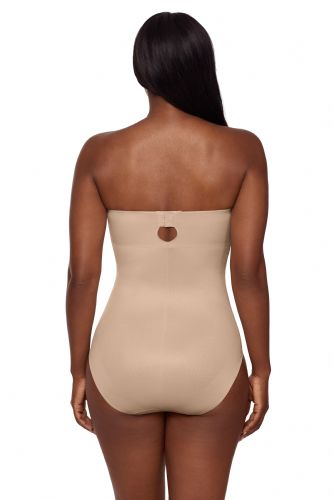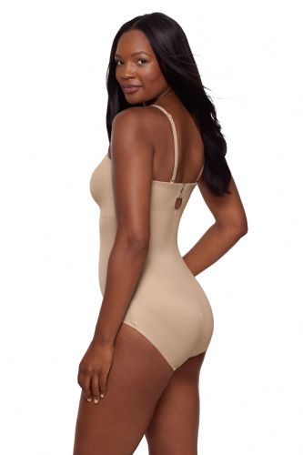 • No-slip grip: Located around the top of the bodysuit, this silicone grip prevents the shaper from falling down, even when worn strapless!