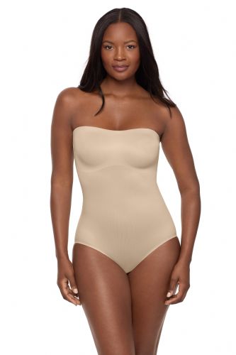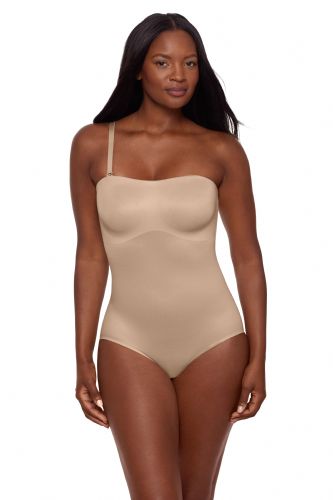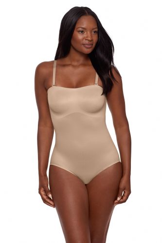Introducing the Show Stopper Strapless Shaping Bodysuit — the ultimate base layer for unforgettable entrances. Crafted for your most important moments, this body shaper delivers firm, confidence-boosting control that smooths and shapes your waist, tummy, midriff, and back with comfort. The unlined, double-layer bust gently lifts with a bonded support band and side boning, sculpting your silhouette while letting your natural curves shine through. A no-slip silicone grip around the neckline keeps everything in place — even when you go completely strapless — while adjustable and detachable straps let you customize your look in seven different ways. The Wonderful Edge® silicone edge finish at the legs guarantees a smooth line-free finish and zero ride-up. When nature calls, the discreet snap gusset closure makes quick changes a breeze. Whether it’s a gala, a wedding, or a red-carpet moment of your own, this bodysuit is designed to disappear under your dress while making you the main event