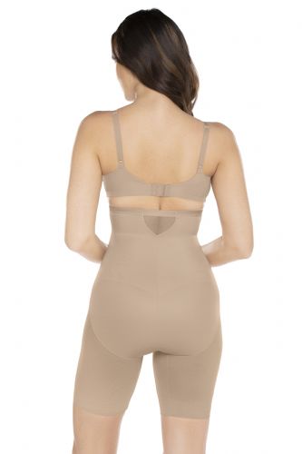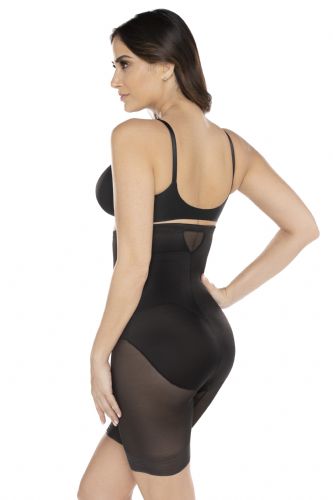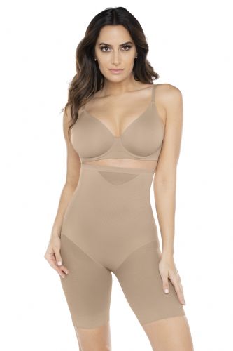 This hi-waist thigh slimmer sexy, sheer panelling which allows the garment to adjust to your body and create a perfect fit. The double panels provide extra firm control and shaping, but maintain a smooth look under your clothes. Choose it to shape your midriff, and slim your tummy, hips, & thighs.