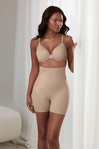 Our Instant Tummy Tuck bike short provides extra firm control, lifting and shaping your tummy, hips, and thighs. Made from a high-performance fabric that feels silky against the skin, this high waisted shaper short delivers maximum compression to the areas you need it most and is comfortable enough to wear every day and under every outfit - from your favourite jeans to your form-fitting cocktail dress. You’ll love the breathable, cotton-like gusset and the way the integrated form-fitting double panels provide maximum compression, transforming your silhouette without feeling restrictive. Innovative mesh inserts around the torso ensure a smooth, no-pinch fit, and our patented Wonderful Edge® silicone strips around the clean finish leg openings means no riding up and no visible lines.